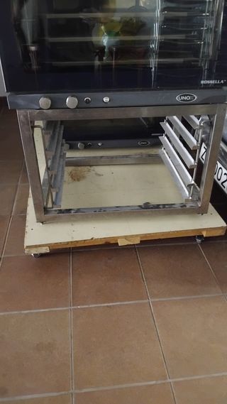 Soporte para horno industrial. Está en buenas condiciones, aunque presenta algunas señales de uso. - Incluye soporte de acero inoxidable. - Ideal para uso profesional o doméstico. - Perfecto estado de conservación. Medida 78x60 cm Precio negociable