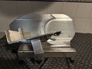 Cortadora de embutidos profesional de la marca Mobba. Ideal para negocios o uso doméstico. - Construcción robusta en acero inoxidable. - Disco de corte de gran diámetro. - Protector de disco de seguridad.