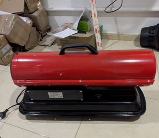 El aparato está equipado con un depósito de combustible integrado y un indicador de nivel. El depósito de 19 litros y el bajo consumo de combustible garantizan un tiempo de funcionamiento de más de 10 horas . La gran salida de aire garantiza un alto rendimiento y el potente ventilador interior asegura una máxima expansión del aire caliente. Solo se ha usado una vez. Tiene un pequeño golpe que no modifica sus características A recoger en Cervelló Barcelona - Color rojo y negro. - Asa de transporte superior. - Cable de alimentación con enchufe.