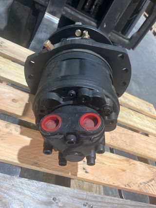 Actuador rotativo de color negro, con conexiones hidráulicas rojas. - Fabricado por Hansa TMP. - Tipo: S 056. - Fabricado en EE. UU.