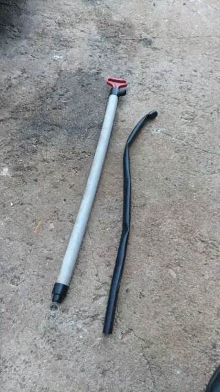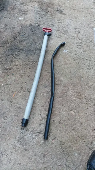 Achicador de agua manual para barcos. Ideal para eliminar el agua acumulada. - Tubo de aluminio. - Empuñadura roja. - Manguera negra flexible.