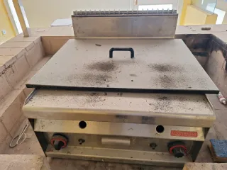 Plancha industrial de la marca Lotus + Campana Extractora a medida. Ideal para negocios de hostelería. - Fabricadas en acero inoxidable. - Superficie de cocción amplia. - Mandos de control de temperatura. Desmontaje y transporte a cargo del comprador.