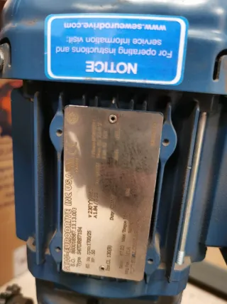 Se vende motorreductor industrial SEW-EURODRIVE, marca de referencia en automatización y maquinaria profesional. 🔧 Características: Modelo: SA77DRS71S4 Potencia: 0,25 kW Alimentación: Trifásico 230V / 400V Frecuencia: 50 Hz Servicio continuo S1 Grado de protección IP54 Clase de aislamiento F Motor ≈ 1300 rpm (salida reducida por reductor) Reductor serie SA77 (alto par) Incluye base/soporte metálico 🛠 Estado: Procede de instalación industrial. En buen estado visual.