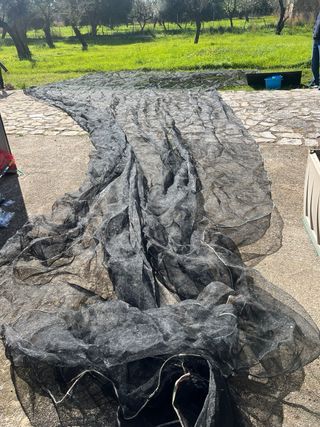 Se venden dos redes para la recogida de almendras. Son de color negro y están diseñadas para facilitar la tarea. - Material: Malla resistente. - Color: Negro. - Cantidad: 2 unidades.