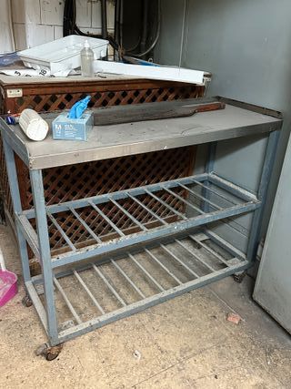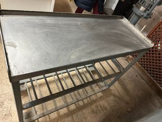 Mesa de trabajo robusta con estructura de acero inoxidable y hierro. - Superficie de acero inoxidable. 112x45x90 - ruedas incluidas - Base de hierro resistente.