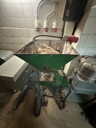 Molino para cereales o triturador de grano. - Tolva de alimentación. - Estructura metálica.