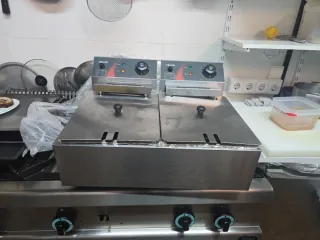 Se vende lote completo de maquinaria y mobiliario de hostelería. - Cocina industrial completa. - Campana extractora. - Freidoras. - Plancha. - Hornillas. - Fregadero. - Estanterías. - Vajilla y menaje.