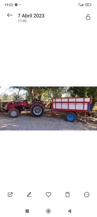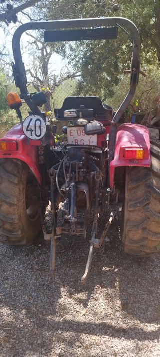 Tractor agrícola en color rojo.motor 2500cc, Cuatro cilindros, 40 CV, inversor, Cuatro salidas hidràulicas, documentada, inscrito en agricultura, falta cambiar bomba aigua y una salida hidràulica, 4x4 - Ruedas traseras grandes. - Luces naranjas y rojas. - Matrícula visible.