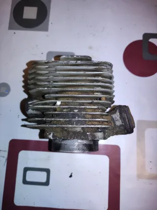 Cilindro para motosierra Husqvarna 2100. Pieza de repuesto. Tiene 3 partes de una esquina de refrigeración rotas. Por lo demás, en buenas condiciones