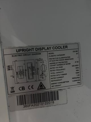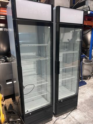 Neveras expositoras con puerta de cristal, ideales para negocios. 2 unidades 400€ cada una - Diseño vertical. - Puertas de cristal para visibilidad. - Estantes interiores.