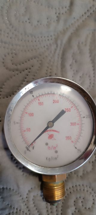 Manómetro de presión de la marca Pukas. - Escala en lb/in² y Kg/cm². - Marco metálico.