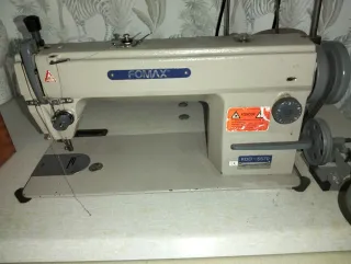 Máquina de coser industrial de la marca FOMAX, modelo KDD-5570. - Color beige. - Incluye manual de instrucciones y accesorios visibles en las fotos. - Ideal para trabajos de costura profesional.