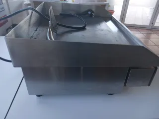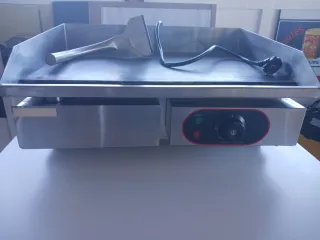 Plancha eléctrica de uso industrial. Fabricada en acero inoxidable. - Superficie de cocción lisa. - Control de temperatura. - Bandeja recogegrasas.
