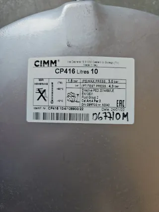 Vaso de expansión CIMM de forma circular. - Material: Metal. - Color: Plateado. - Todo el conjunto de sondas y relojes de cardera ferroli.