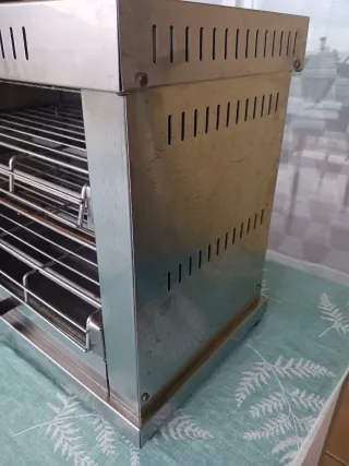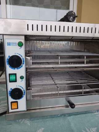 Tostador industrial de la marca Forved Italia, ideal para negocios de hostelería. - Fabricado en acero inoxidable. - Dos rejillas cromadas. - Panel de control con temporizador y selector de potencia. - Interruptor de encendido/apagado. - Asa negra para extracción de la bandeja.