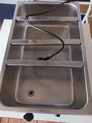 Equipo industrial para baño maría. - Fabricado en acero inoxidable. - Incluye grifo dispensador. - Interruptor de encendido/apagado. - Control de temperatura.
