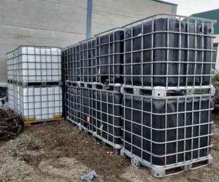 Contenedores GRG (IBC) de 1000 litros de capacidad, de segunda mano. Ideales para almacenamiento y transporte. - Estructura metálica. - Depósito de plástico blanco.