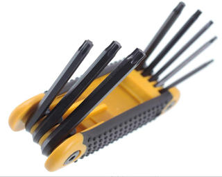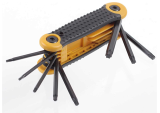 Juego de llaves Torx de la marca Proxxon. Herramienta compacta y práctica. - Diseño plegable tipo navaja para fácil almacenamiento. - Mango ergonómico con textura antideslizante. - Puntas de acero de alta resistencia. Nunca usadas. Como nuevas.