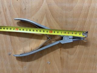 Herramienta manual para el montaje y desmontaje de anillos de retención. - Diseño curvo en las puntas. - Fabricado en metal plateado.