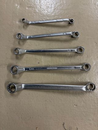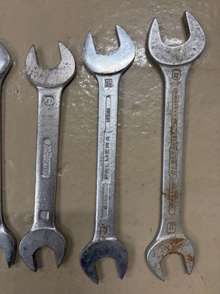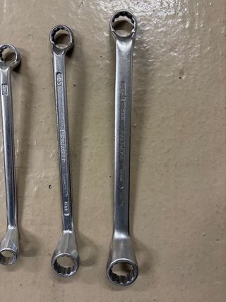 Lote de llaves fijas dobles (boca-boca), rectas marca Palmera. Cantidad: 11 llaves Material: acero / cromo-vanadio Estado: • Usadas • Desgaste estético normal • Alguna con óxido superficial leve • Bocas íntegras, no “abiertas” ni redondeadas • Todas funcionales