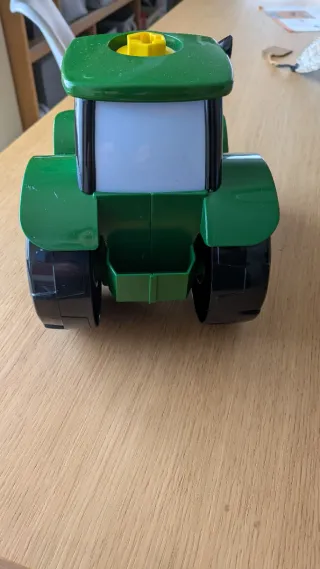 Juguete de tractor John Deere en color verde. - Diseño icónico de John Deere. - Ruedas negras con detalles amarillos. - Detalles en blanco y negro en la cabina. Incluye herramientas