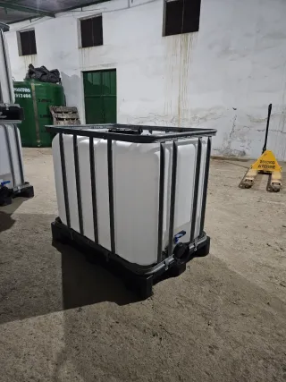 Contenedor depósito de 600 litros con un solo uso. - Palé de plástico negro. - Grifo de salida. - Tapa superior. Medidas 1.20 largo, 1m ancho y 0.80 alto Tlf 671912466