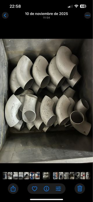 2 vslvulas de alta presion dn50 PN63 en inox 316(valor en tienda supera lod 1000 euros unidad) 3 valvulas de mariposa dn-80pn16 Codos de 3” y 4” inox 304 sch-10(22 codos en total) precio en tiebda de este lote serian unos 2500 euros y lo vendo todo por subrante de obra por 600euros negociables y tambien tengo algun eqyupo de soldadura tig , amoladora , pulidora inox , plasma corte chapa, prensa rems ,accesorios barandilla acero inoxidable...
