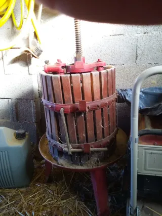 Prensa de vino. Está completa y operativa. La compŕe de seguna mano, la he usado un par de años pero ahora mismo es un trasto ocupando espacio. La base de dos de las patas está bastante descascarillada, por lo demás, estado aceptable. No hago envíos. Precio no negociable, por menos me la quedo de macetero. La prensa está en Pantón, Lugo.