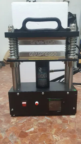 Graveda Graspresso Prensa de 10 toneladas Graspesso con cilindro hidráulico. - Diseño robusto y compacto. - Panel de control digital con ajustes.. - Base estable con patas de goma. Nueva, nunca usado Ahora solo está guardada acumulando polvo. Funciona perfectamente. Se puede probar antes de comprar.