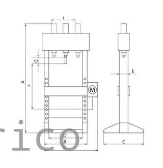 Prensa hidráulica vertical para trabajos de taller. - Estructura robusta. - Panel de control con manómetro.