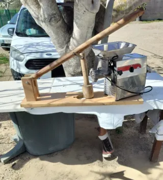 Máquina industrial para triturado de carne 🥩, ideal para matanzas y elaboración de embutidos. Funciona correctamente ✔️ Incluye: ✔ Picadora eléctrica ✔ Tabla de madera con prensa (para embutidos) ✔ Soporte metálico resistente Equipo completo listo para trabajar 🔧 Perfecto para uso doméstico intensivo o profesional. 📍 Mallorca 💰 180€ negociables picadora carne, embutidos, matanza, chorizo, sobrasada, carniceria, maquina carne, industrial, acero inoxidable, cocina profesional, charcuteria, rural, tradicional