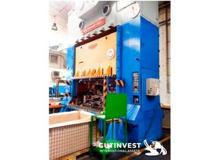 Fabricante COWLISHAW Observaciones Capacidad total : 500 Ton. Curso del Carro: 406 mm, Regulación: 400 mm, Altura de cierre: 810 mm, Golpes por minuto: 16, Dimensiones mesa: 2700 x 1600mm, Carro: 2700 x 1600mm, Cojines en la Mesa: SI, Tipo de Prensa: Tirantes, Estado: En funcionamiento.