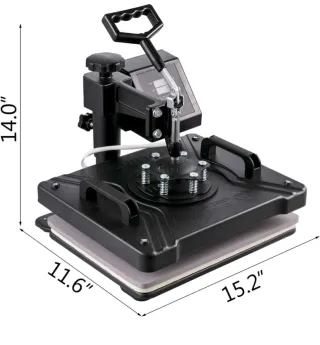 Prensa de calor digital para sublimación con control de temperatura y tiempo. - Rango de temperatura: 93-450°F (34-232 °C) - Control de tiempo: 0-999 segundos - Potencia de calentamiento: 1250W - Tamaño de la platina: 15/38cm - Diseño que ahorra tiempo y calentamiento rápido.