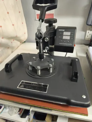 Vendo prensa de calor VEVOR de sublimación, multifunción, ideal para transferir diseños a diversos materiales. Funciona bien y está muy cuidada. Perfecta para iniciarse. - Diseño compacto y fácil de usar. - Asa roja para levantar la prensa. - Indicador digital de temperatura y tiempo. - Almohadilla de calor gris. - Adhesivo de advertencia 'Hot Caution'. - Prensa plana de 28x38cm aprox. - Trae prensa de tazas, gorras y platos. ℹ️ El cable se reforzó con cinta aislante en alguna ocasión, funciona sin problema pero trae un cable nuevo incluido que compré por si lo necesitaba pero no fuenel caso. 💰 Precio algo negociable.