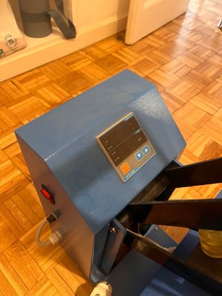 Prensa de calor VEVOR en color turquesa claro, ideal para sublimación de botellas Nueva, solo usada para comprobar que funciona.. en Amazon cuesta 129€ - Panel de control digital con pantalla. - Botones para ajuste de temperatura y tiempo. - Indicadores de calentamiento y alarma.