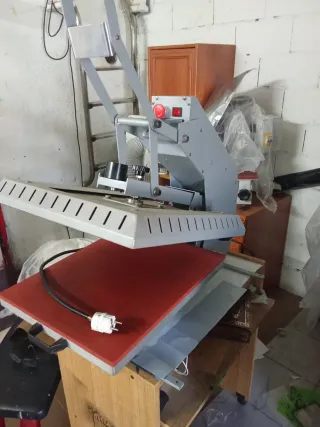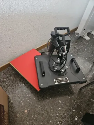 Prensa térmica para sublimación o vinilo textil. - Tamaño de la plancha: 38x38 cm. - Incluye advertencias de superficie caliente. Sólo se ha utilizado para serigrafiar prendas textiles unas 20 veces. Está a estrenar. Costó mas de 500€