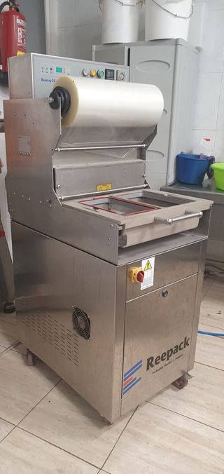 Termoselladora Reepak – Como nueva, ideal para envasado profesional 🔥 📅 Año de fabricación: 2006 🛠️ Uso mínimo: No ha funcionado más de 3 días al año, prácticamente nueva. 📦 Incluye: Molde para 2 bandejas de 17 x 28 cm. ✅ Funciones avanzadas: Hace vacío y termosellado, además incorpora gas inerte para una mejor conservación. 📏 Medidas: 🔹 Largo: 55cm 🔹 Profundidad: 1.10m 🔹 Profundidad de la prensa: 55cm 🔹 Alto: 1.60m ✅ Características 🚀 Lista para trabajar y en excelente estado. Se puede ver y probar sin compromiso.