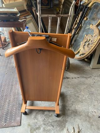 Prensa de pantalones eléctrica Foppapedretti. - Diseño de madera. - Ruedas para fácil movilidad.