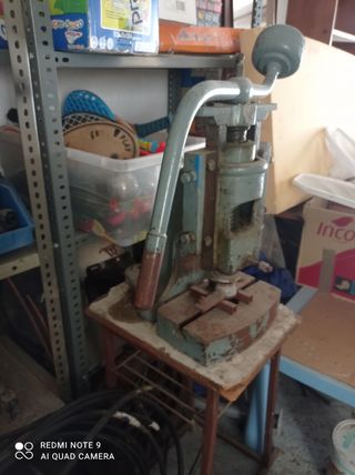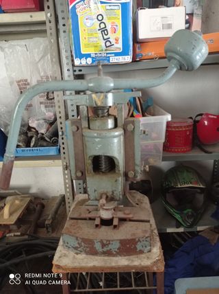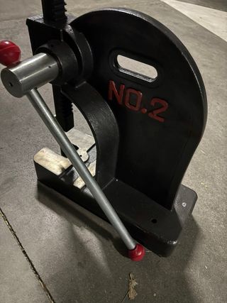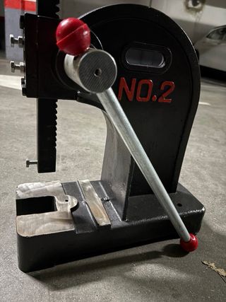 Prensa manual de 2 toneladas, ideal para trabajos de taller. - Construcción robusta de hierro fundido. - Palanca de operación con empuñadura. - Base estable para montaje.