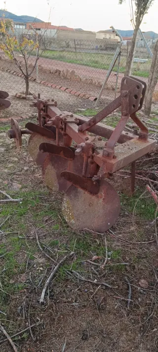 Conjunto de arados para tractor, incluye cultivador, discos y vertederas. Ideal para trabajos agrícolas. - Arado con discos. - Incluye vertederas. - Estructura robusta.