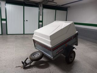 Remolque marca Erdé con tapa rígida blanca. - Color de la tapa: blanco. - Color de la estructura: gris con detalles rojos y negros. - Rueda de repuesto incluida.
