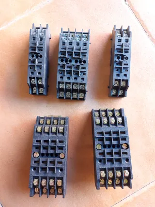 Conjunto de bases para relés. - Fabricadas en plástico negro. - Con terminales de tornillo para conexión.