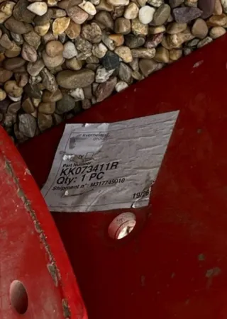 Pieza de repuesto para Kverneland AD85. - Color rojo. - Fabricado en material resistente. - Con orificios para sujeción.