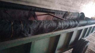 Remolque recolector de almendras de 7,5m de largo por 1,5 de ancho con peladora incorporada. Sin documentación. Se encuentra en un pueblo de Cuenca a unos 30km de Utiel.