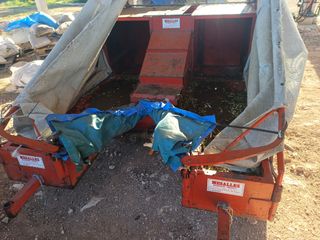 Remolque diseñado para la recolección de almendras y aceitunas ,basculante de dos botellas, enrolla las lonas de los dos lados,freno de remolque con documentacion - Estructura metálica resistente. - Lona protectora negra. - Ruedas para fácil desplazamiento.
