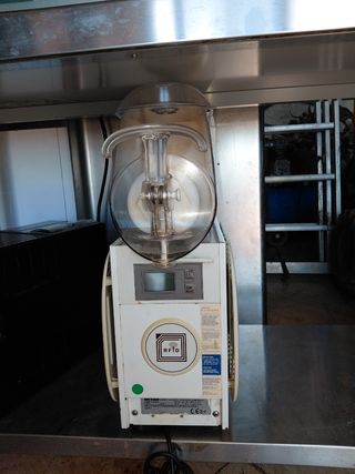 Máquina granizadora para preparar bebidas frías. - Diseño compacto y funcional. - Depósito transparente para visualizar el contenido. - Grifo dispensador para servir fácilmente.