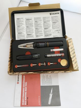Se vende soldador a gas auto-inflamable Würth WGLG 100. Está en perfecto estado y se entrega en su caja original. Se ha usado solo 1 vez, practicamente nuevo. - Ideal para trabajos de precisión. - Marca de alta calidad. - Incluye varios accesorios. - Viene en su caja original. - Estamos aquí para tus preguntas, no dudes en contactarnos y podemos negociar ---- 🚴♂️ Somos tienda I Love Bike en Benijofar, Alicante para bicicletas, ropa ciclista, cascos, accesorios y componentes. ilovebike bike shop - cadena, cassette, piñones, frenos, ruedas, neumaticos, cables, manillar, potencia, puños, horquillas, sillin, cascos, luces, etc.