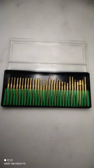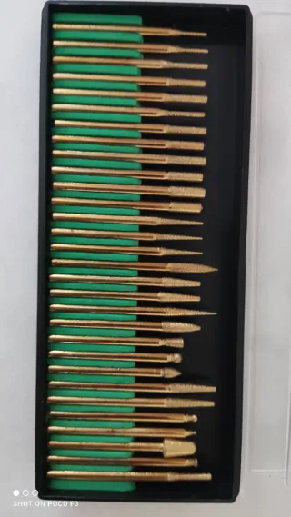 Set de brocas de diamante con vástago de 3mm. - Incluye 30 piezas. - Vástago de 3mm. - Ideal para trabajos de precisión.