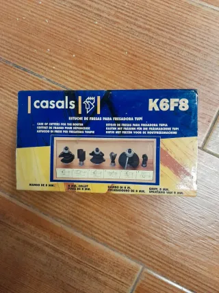 Estuche de 6 fresas para fresadora tupí de la marca Casals, modelo K6F8