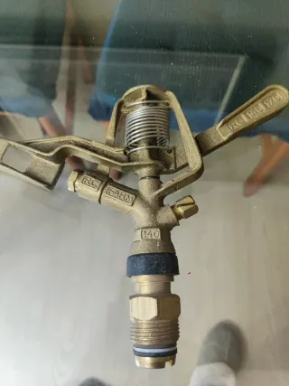 Aspersor de sector fabricado en latón, ideal para riego. - Cuerpo principal de latón. - Mecanismo de resorte. - Marca: VYR 60. DISPONGO DE 4 ASPERSORES A 25€ LA UNIDAD. SI TE LLEVAS LOS CUATRO LOS DEJO EN 90€.